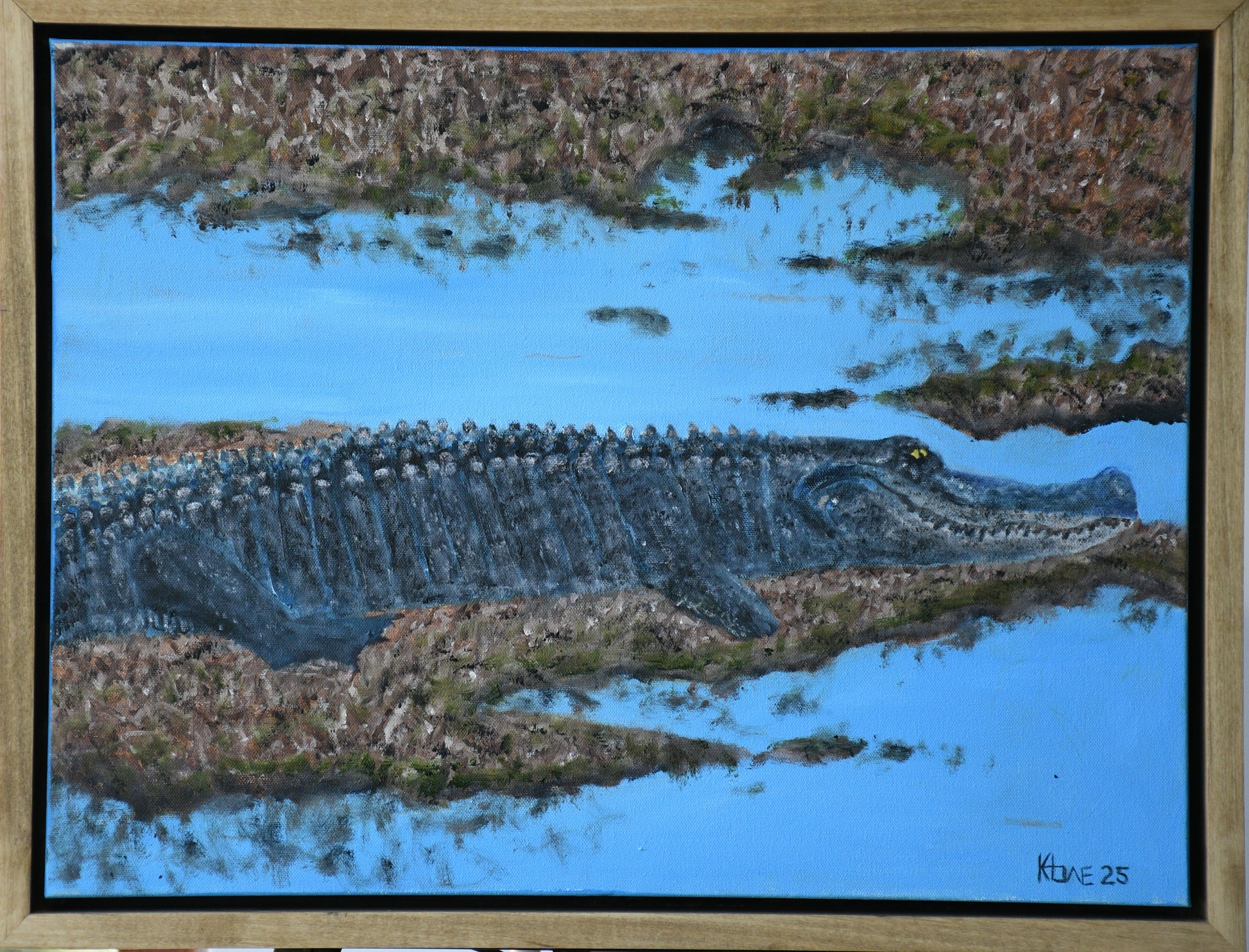 "Black Bayou Gator" 18x24 oil on canvas with Handmade Floating frame